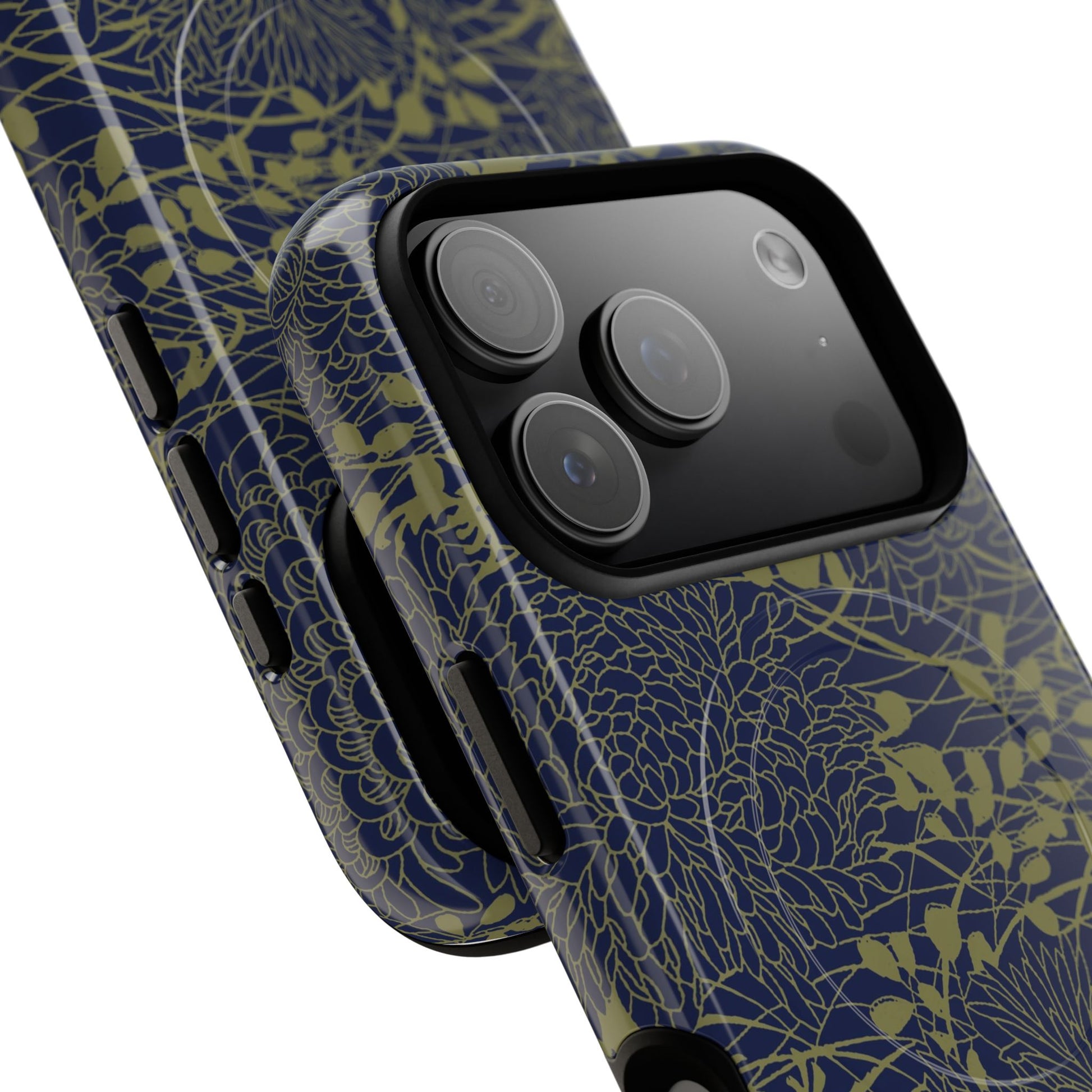 MagSafeタフケース - Chrysanthemums (オリーブ/ダークブルー) | iPhone 17 / iPhone 17 Air / iPhone 17 Pro / iPhone 17 Pro Max